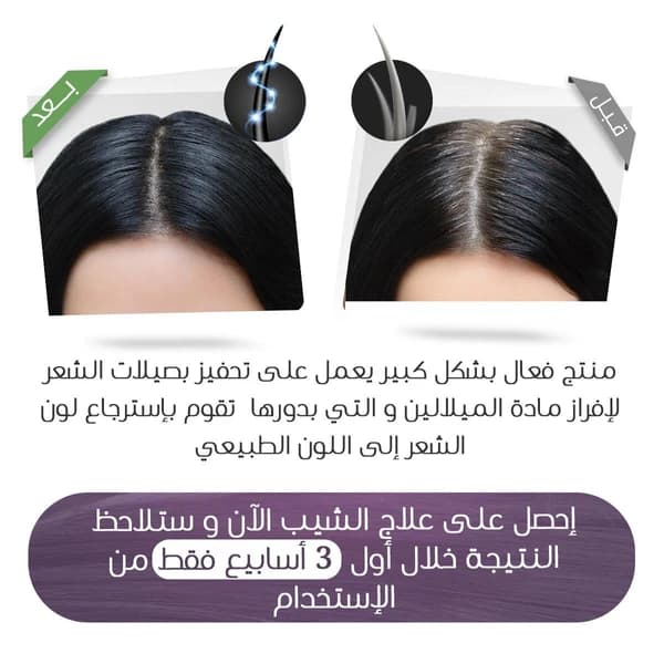 شامبو علاج الشيب ليس صبغة هو منتج علاجي طبيعي ومرطب عميق للشعر غني بمادة الميلانين والنحاس والمعادن والفيتامينات و فيتامين B12 الموجودة في مكوناته الطبيعية