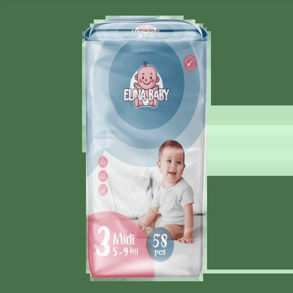 حفاضات اطفال - حفاضات اطفال المقاس 3 العدد 58 حفاض الوزن 9-5 كغ
