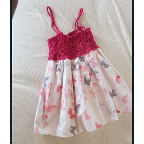 فستان بعمر 1 أو 6 سنوات مخيط من قماش محبوك أو كتان بخيط من الخيزران أو القطن