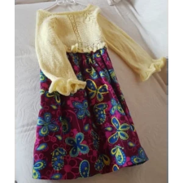فستان بعمر 1 أو 6 سنوات مخيط من قماش محبوك أو كتان بخيط من الخيزران أو القطن