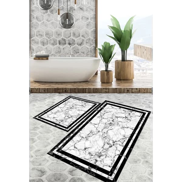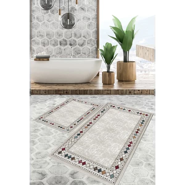سجاد اطقم الحمامات - سجادة أرضية مضادة للبكتيريا قابلة للغسل وغير قابلة للانزلاق التنظيف: يمكنك غسله في غسالة السجاد أو مراكز غسيل السجاد.