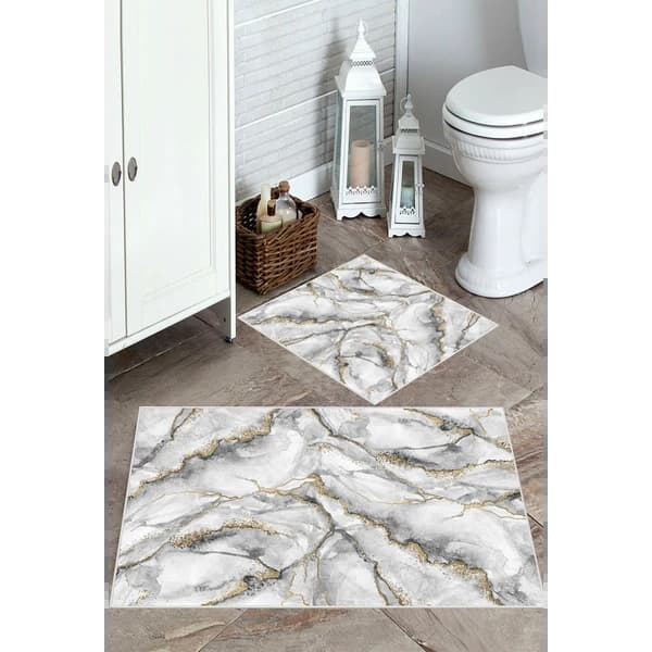 سجاد اطقم الحمامات - سجادة أرضية مضادة للبكتيريا قابلة للغسل وغير قابلة للانزلاق التنظيف: يمكنك غسله في غسالة السجاد أو مراكز غسيل السجاد.