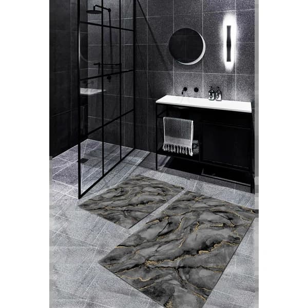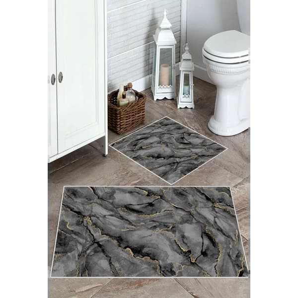 سجاد اطقم الحمامات - سجادة أرضية مضادة للبكتيريا قابلة للغسل وغير قابلة للانزلاق التنظيف: يمكنك غسله في غسالة السجاد أو مراكز غسيل السجاد.