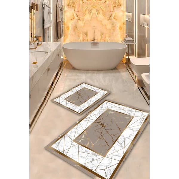 سجاد اطقم الحمامات - سجادة أرضية مضادة للبكتيريا قابلة للغسل وغير قابلة للانزلاق التنظيف: يمكنك غسله في غسالة السجاد أو مراكز غسيل السجاد.