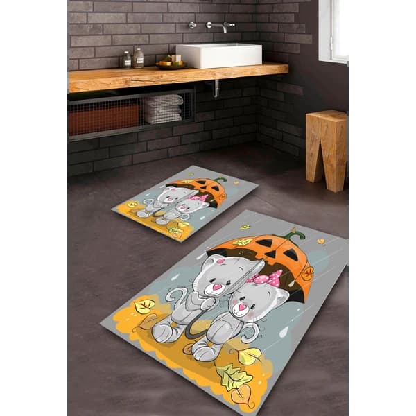 سجاد اطقم الحمامات - سجادة أرضية مضادة للبكتيريا قابلة للغسل وغير قابلة للانزلاق التنظيف: يمكنك غسله في غسالة السجاد أو مراكز غسيل السجاد.