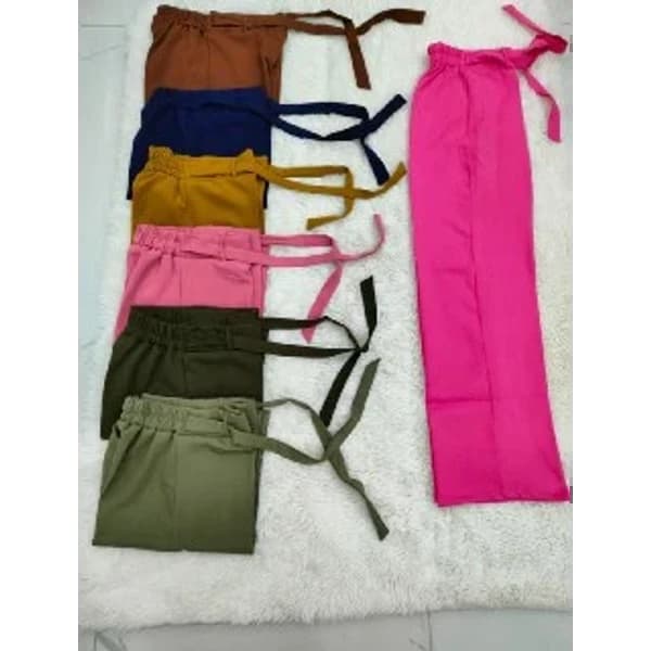 بنطال قصة واسعة من الأسفل بتصميم حزام للخصر - بنطال قصة واسعة من الأسفل بتصميم حزام للخصر