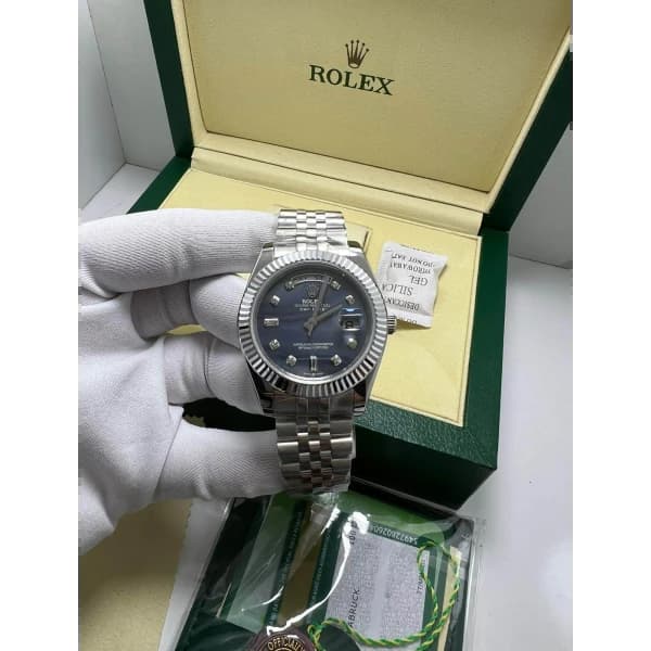 ساعة رولكس صناعة صينية محرك هندي تشحن من خلال حركة اليد ضد الماء اللون ثابت لايتغير مع كفالة حقيقية مع علبة رولكس كما في الصورة مع بطاقة تعريفية (هوية خاصة بكل ساعة )
