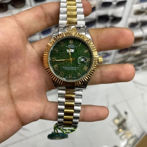 ساعة رولكس صناعة صينية محرك هندي تشحن من خلال حركة اليد ضد الماء اللون ثابت لايتغير مع كفالة حقيقية مع علبة رولكس كما في الصورة مع بطاقة تعريفية (هوية خاصة بكل ساعة )