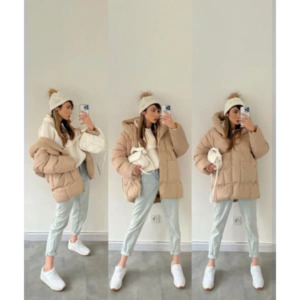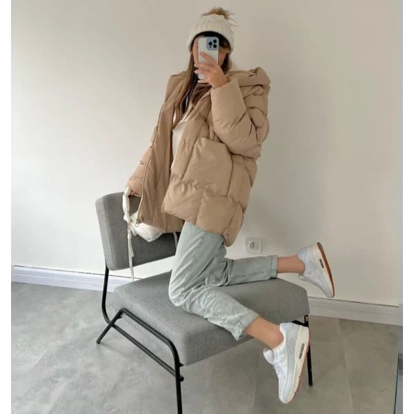 معاطف نسائية - معطف معيار كبير الحجم سترة منتفخة بغطاء للرأس مع جيوب جانبية