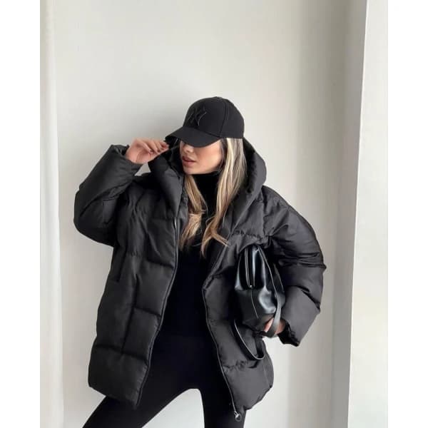 معاطف نسائية - معطف معيار كبير الحجم سترة منتفخة بغطاء للرأس مع جيوب جانبية