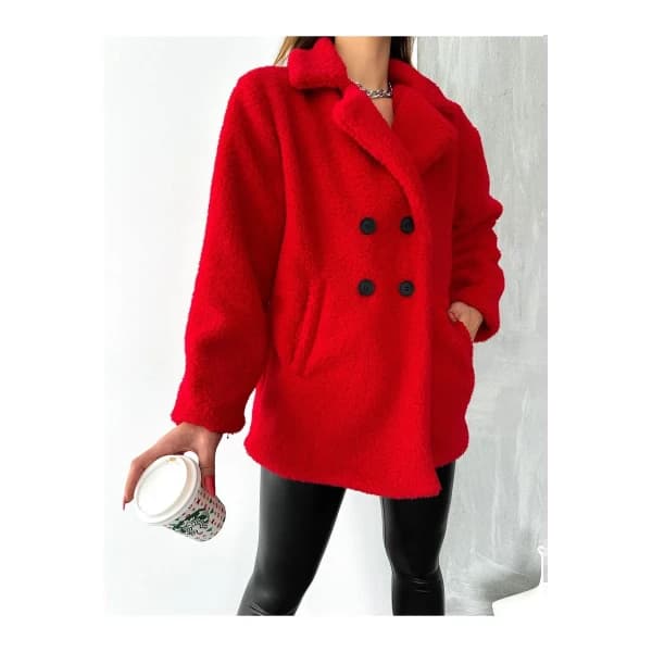معاطف نسائية - معطف معيار كبير الحجم سترة منتفخة بغطاء للرأس مع جيوب جانبية
