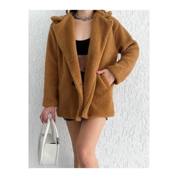 معاطف نسائية - معطف معيار كبير الحجم سترة منتفخة بغطاء للرأس مع جيوب جانبية