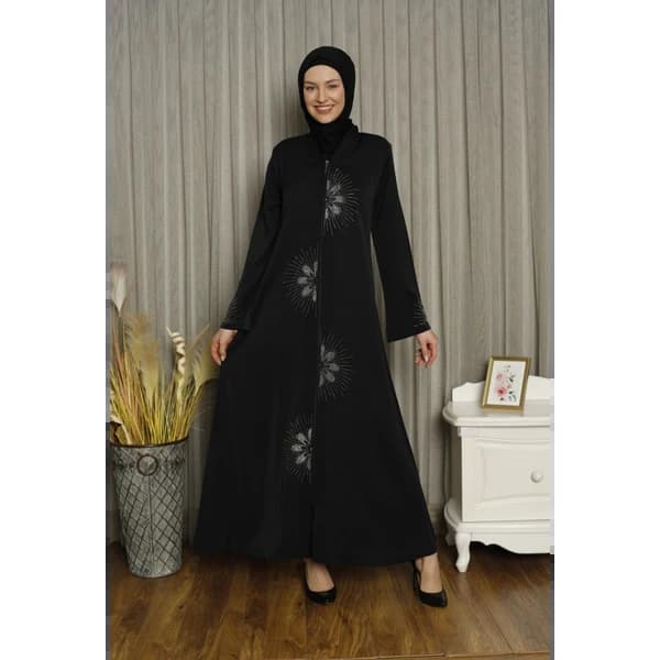 عباية نسائية صيفي بكبيشون وأكمام زم مع تطريز ألماس ليزري مميز 608
