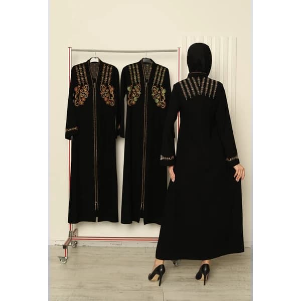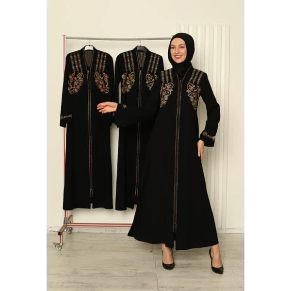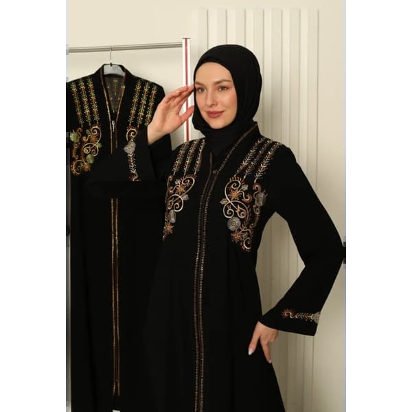 عباية نسائية صيفي بكبيشون وأكمام زم مع تطريز ألماس ليزري مميز 608