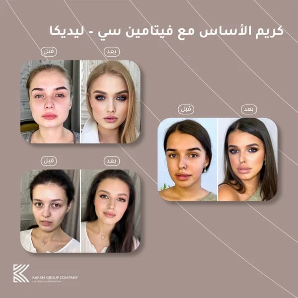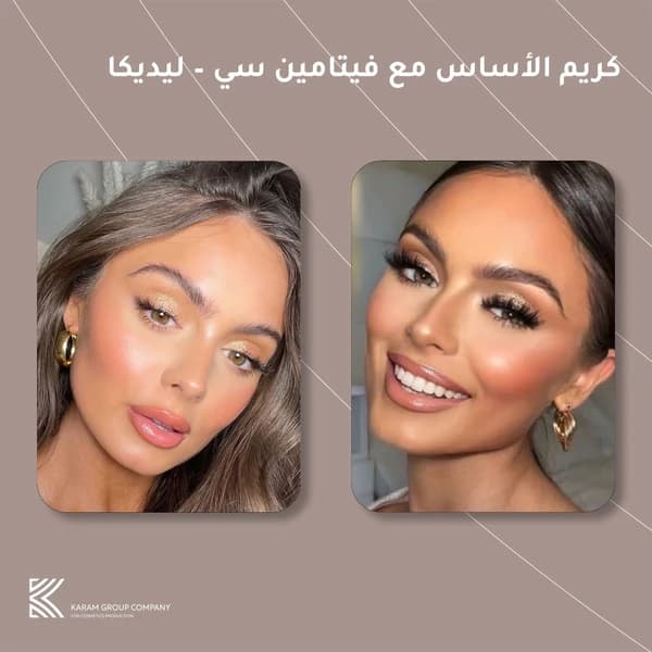 كريم الأساس مع فيتامين سي - ليديكا - بقوامه المخملي وبتركيبته الطبيعية وصياغته المائية يوحد لون بشرتكِ ويجعلها مثالية من خلال تغطية الخطوط الدقيقة والبقع والاحمرار والهالات السوداء والمسام المتسعة في البشرة بثواني وبفضل احتوائه على فيتامين سي يعطي تأثيراً مشرقاً ومنعشاً للبشرة