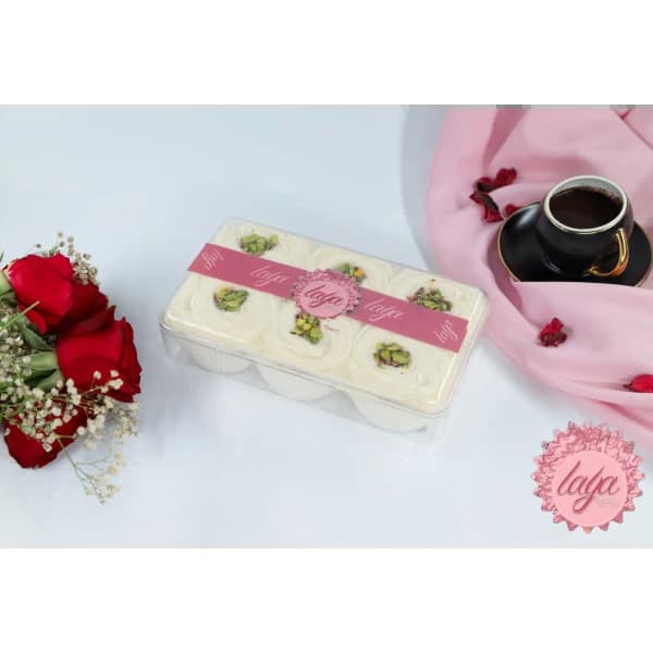المكونات: سكر ، دقيق قمح ، السمن العربي الاصلي ، فستق 7٪ ، ماء ، نكهة فانيليا ، حامض الستريك.