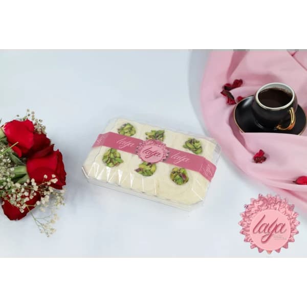 المكونات: سكر ، دقيق قمح ،السمن العربي الاصلي ، ، فستق 7٪ ، ماء ، نكهة فانيليا ، حامض الستريك.