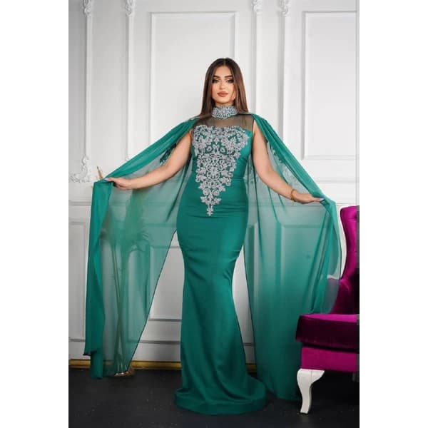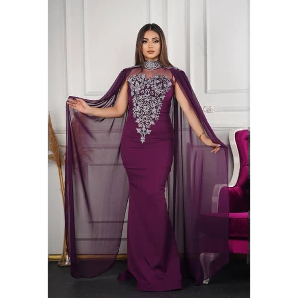 فستان سهرة طويل مصنوع من الساتان عالي الجودة يتسم بالبساطة والأناقة