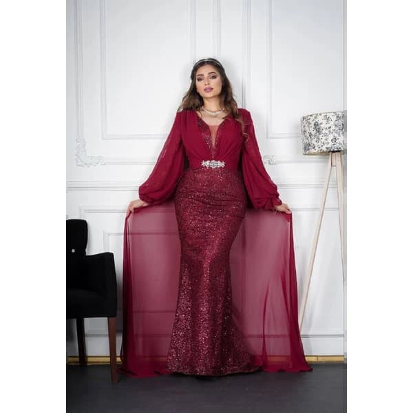 فستان سهرة طويل - فستان سهرة طويل مصنوع من قماش الستان النوع الممتاز