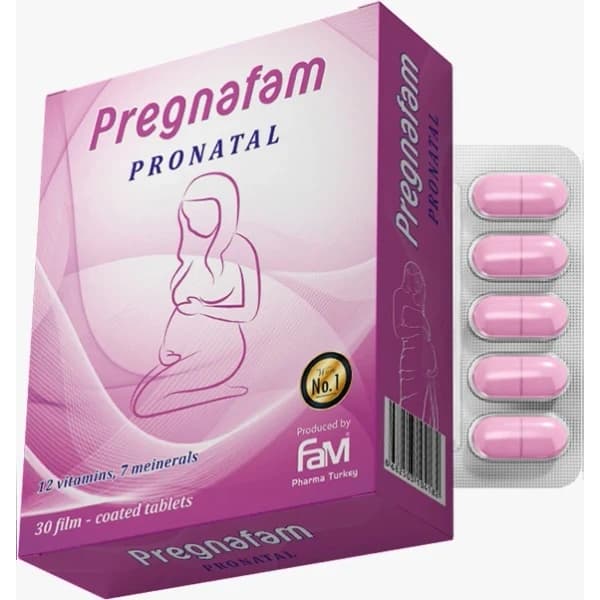 بريغنافام - PREGNAFAM هو صيغة خاصة توفر 100٪ من القيمة اليومية الموصى بها من معظم الفيتامينات والمعادن الأساسية للنساء الحوامل والمرضعات