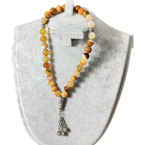 مسبحة صلاة من الحجر الطبيعي - مسبحة صلاة من الحجر الطبيعي مسبحة الصلاة المصنوعة من الحجر الطبيعي هي مسبحة صلاة مصنوعة من الأحجار الطبيعية وتستخدم كملحق أنيق وأداة للشفاء. الأحجار الطبيعية هي معادن موجودة في الطبيعة بألوان وأنماط وخصائص مختلفة. ويعتقد أن كل حجر طبيعي له معناه وفائدته الخاصة. يمكن أن تكون مسبحة الصلاة المصنوعة من الحجر الطبيعي بأحجام وأشكال وألوان مختلفة. يمكن استخدامه من قبل كل من النساء والرجال. يمكن ارتداء مسبحة الصلاة المصنوعة من الحجر الطبيعي يوميًا واستخدامها في المناسبات الخاصة. فوائد مسبحة الصلاة الحجر الطبيعي يُعتقد أن مسبحة الصلاة المصنوعة من الحجر الطبيعي لها فوائد عديدة جسديًا وروحيًا. الفوائد الجسدية: يمكن أن يساعد في تقليل التوتر. قد يساعد في تخفيف الألم. قد يساعد في تقوية جهاز المناعة. قد يساعد في تحسين الدورة الدموية. الفوائد الروحية: يمكن أن يساعد في توفير الهدوء والسلام. يمكن أن يساعد في نشر الطاقة الإيجابية. يمكن أن يساعد في توفير الحماية. يمكن أن يساعد في جلب الحظ والوفرة.