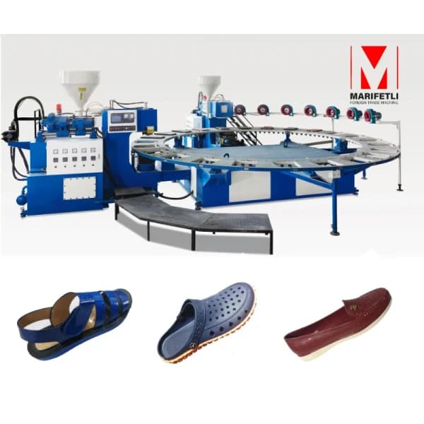 ماكينة حقن نعل PP الدوارة - ماكينة حقن نعل PP الدوارة تقدم حلاً مثاليًا لإنتاج النعال من مادة PP بكفاءة وسرعة. مع نظام التدوير المتطور، توفر الماكينة تدفق إنتاج مستمر ودقة عالية، مما يجعلها خيارًا ممتازًا لتلبية احتياجات التصنيع الحديثة.