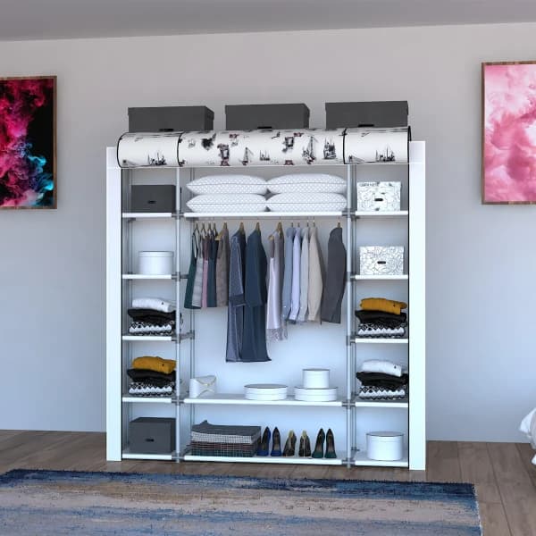 خزانة ملابس من القماش ذات شماعات واحدة - نموذج ألتير الخاص بنا؛ وهو يتألف من الأنابيب البلاستيكية وأجهزة PP. يتم إنتاج الغلاف الخارجي من الربط المسمى Spunbond. أبعاد موديل أركتوروس الذي يتكون من 11 رف قماش و 1 علاقة (60 سم) هي كما يلي: الارتفاع: 160 سم، العرض: 130 سم، العمق: 44 سم