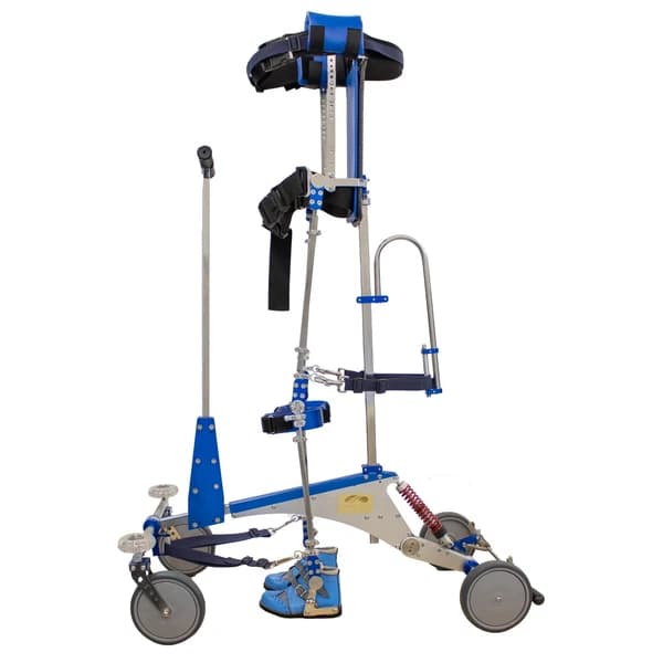 العربة المساعدة على المشي للأطفال ذوي الاحتياجات الخاصة - تمتاز العربة ببنية متينة مصممة خصيصا لحمل وزن الطفل وتوفير الدعم والراحة اللازمة له مع الحفاظ على وزن خفيف للعربة وسهولة حركتها.