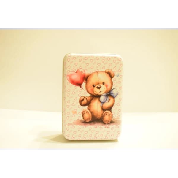 صندوق معدني بطبعة دببة وقلوب - أبعاد المنتج 8 سم × 5.5 سم