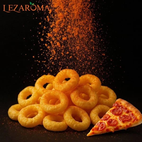 حلقات مقرمشة ذهبية، تتزين بمسحوق نكهة البيتزا الغني من Lezaroma، حيث يلتقي الطعم الكلاسيكي للجبنة الذائبة مع صوص الطماطم الإيطالي ولمسة الأعشاب العطرية. مشهد يفتح الشهية ويحوّل أي منتج إلى تجربة طعم لا تُنسى.
