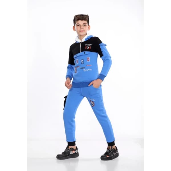 بيجامات ولادية شتوي قطعتين - بيجامات بناتية شتوي قطعتين قطن 3 خيط ب.ب 2.3.4.5