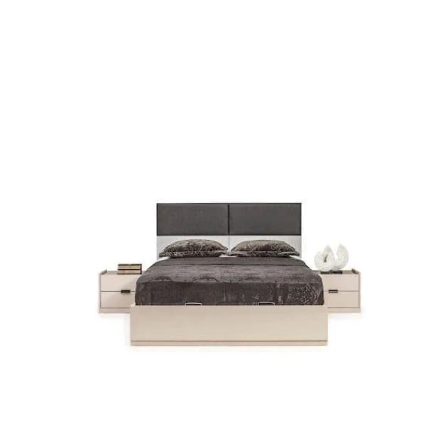 السرير: متوفر بحجمين: 160 × 200 × 140 سم أو 180 × 200 × 140 سم ، ويشمل السرير تخزينا تحت السرير ولوح أمامي قياسي.