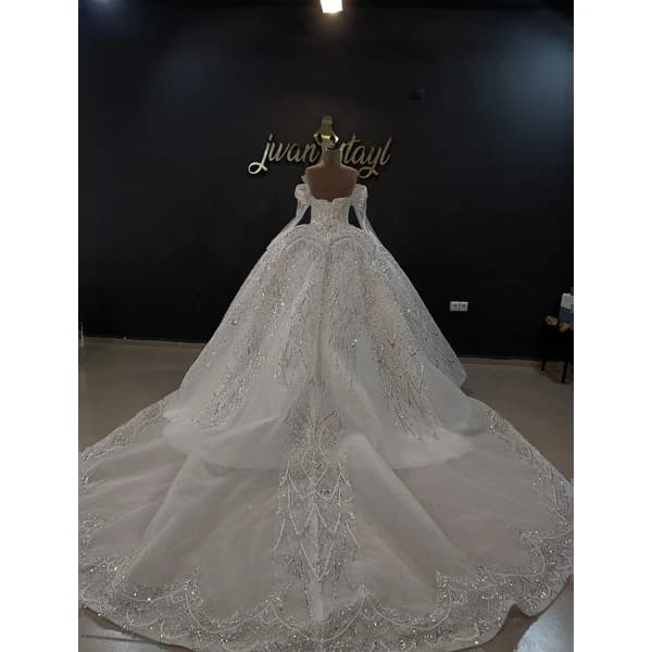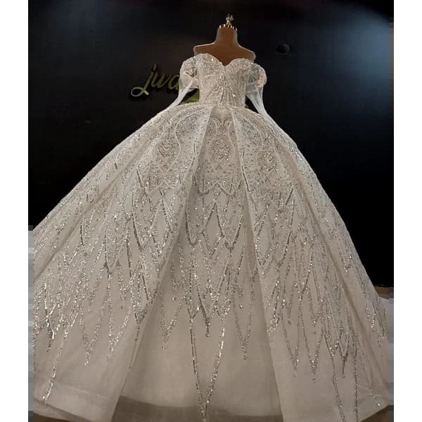 فساتين الملكي 2023 مكشوفة الأكتاف مزينة بالترتر والزهور للحفلات الجميلة