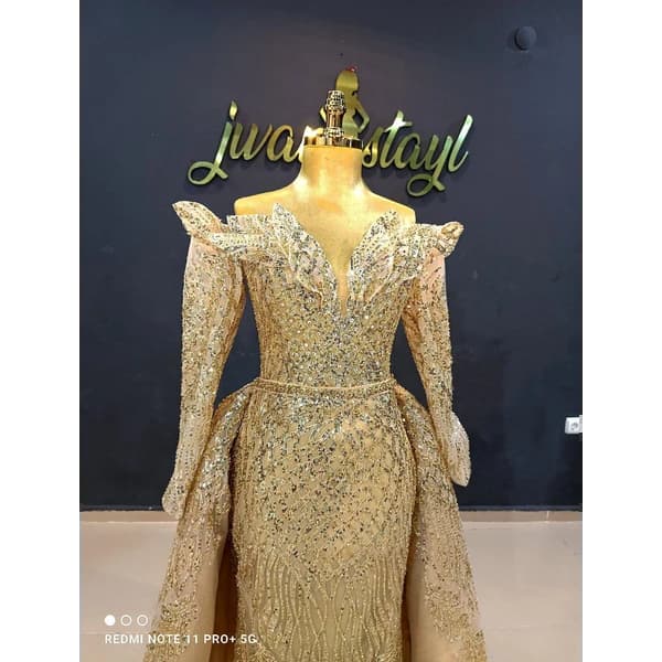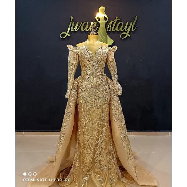 فساتين الملكي 2023 مكشوفة الأكتاف مزينة بالترتر والزهور للحفلات الجميلة