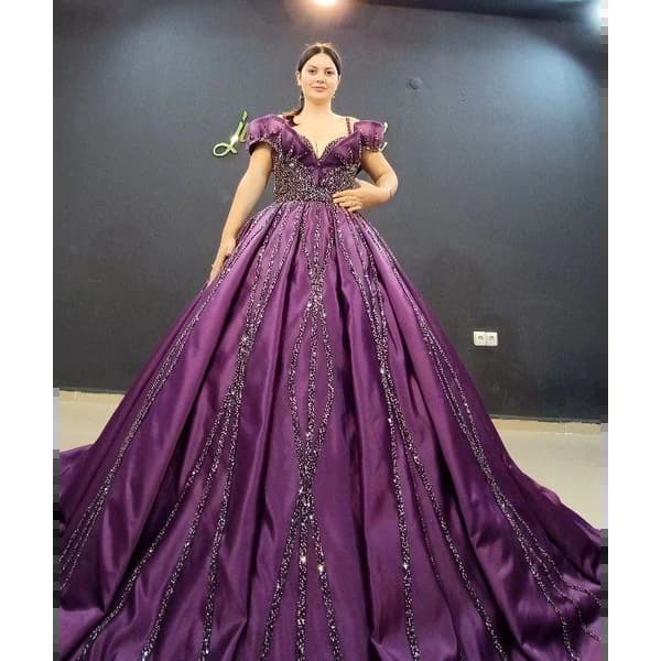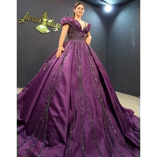 فساتين الملكي 2023 مكشوفة الأكتاف مزينة بالترتر والزهور للحفلات الجميلة