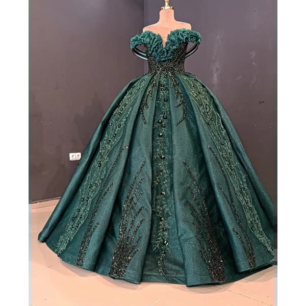 فساتين الملكي 2023 مكشوفة الأكتاف مزينة بالترتر والزهور للحفلات الجميلة