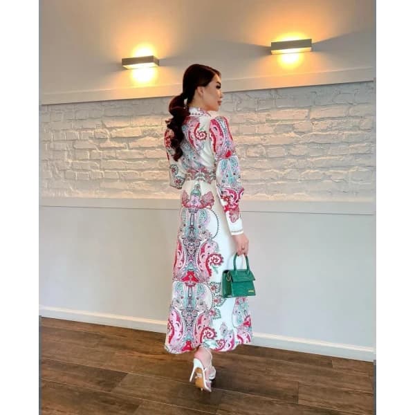 فستان قطن زهري نسائي مزخرف - فستان قطن زهري نسائي مزخرف