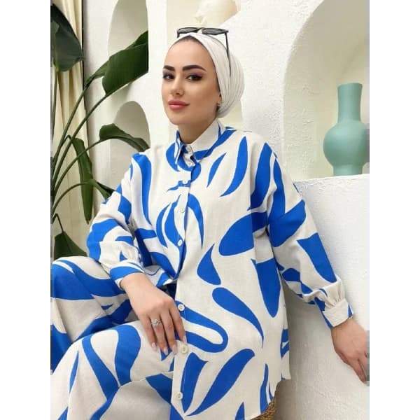 نوع القماش: قماش كتان أبعاد الموديل: ارتفاع 1.60 سم 58 كجم. طول قميص المنتج: حوالي 72 سم ترتدي عارضة أزياء