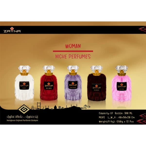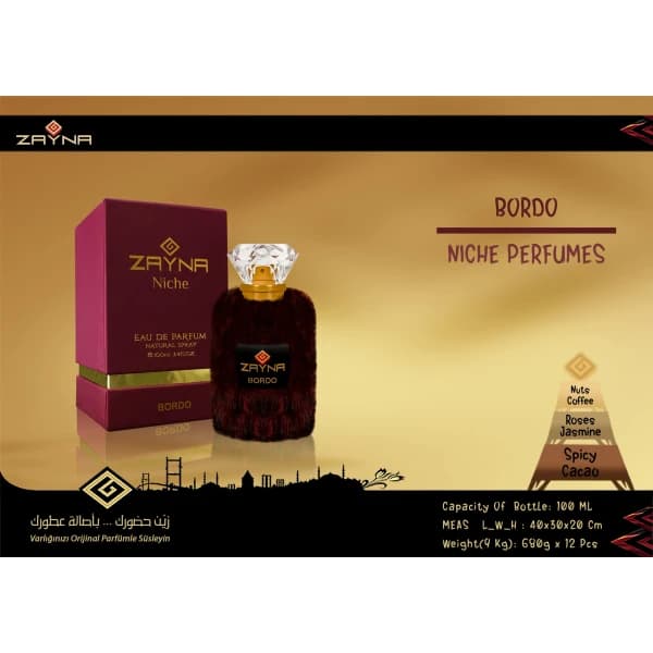 Zayna Bordo عطر نسائي 100 مل - عطر نسائي في زجاجة خاصة لشركة زينة مكسوة بالفرو مع علبة فخمة