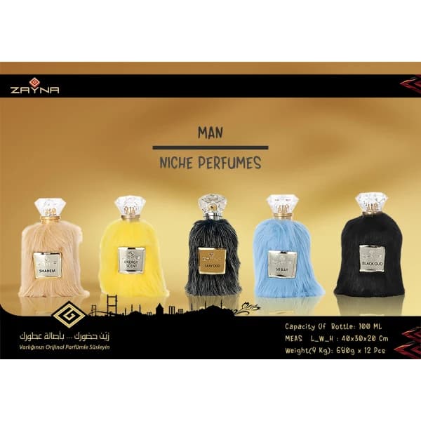 Zayna Energy Scent عطر رجالي 100 مل - عطر رجالي في زجاجة خاصة لشركة زينة مكسوة بالفرو مع علبة فخمة