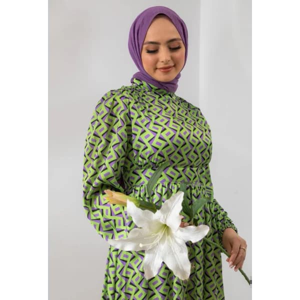 فستان ساتان بنمط متعرج - فستان ستان بنمط متعرج