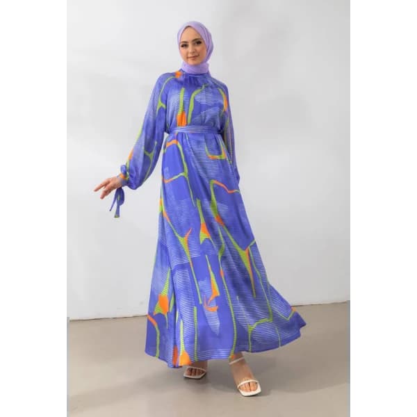 فستان ساتان بنمط متعرج - فستان ستان بنمط متعرج