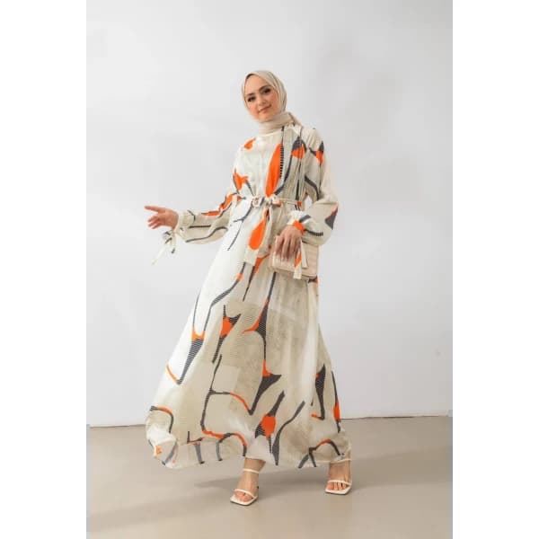 فستان ساتان بنمط متعرج - فستان ستان بنمط متعرج